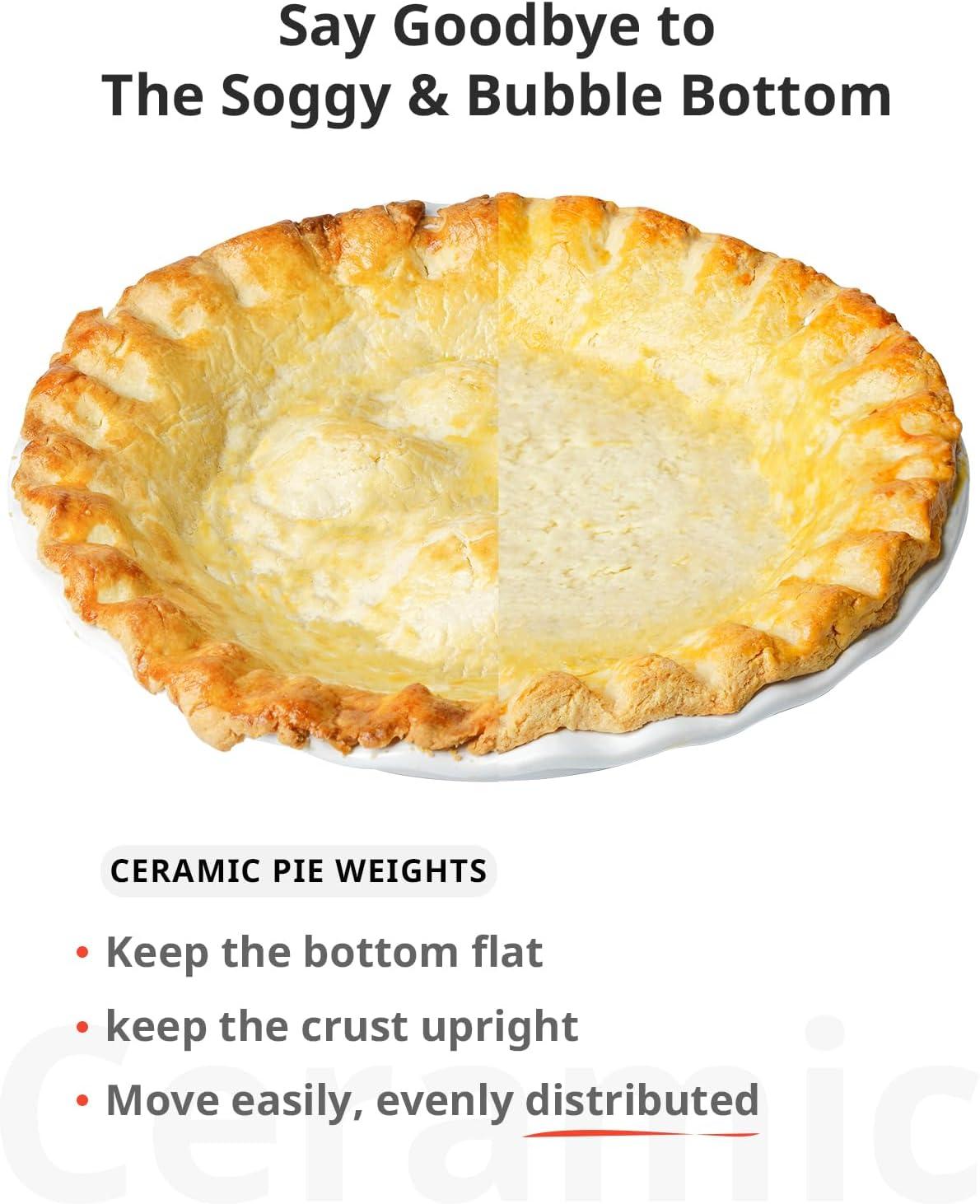 Perfect Crust Every Time: The fluted edge makes crust crimping easy and elegant. Included ceramic pie weights prevent bubbling and shrinking, helping you achieve golden, bakery-quality crusts without hassle.