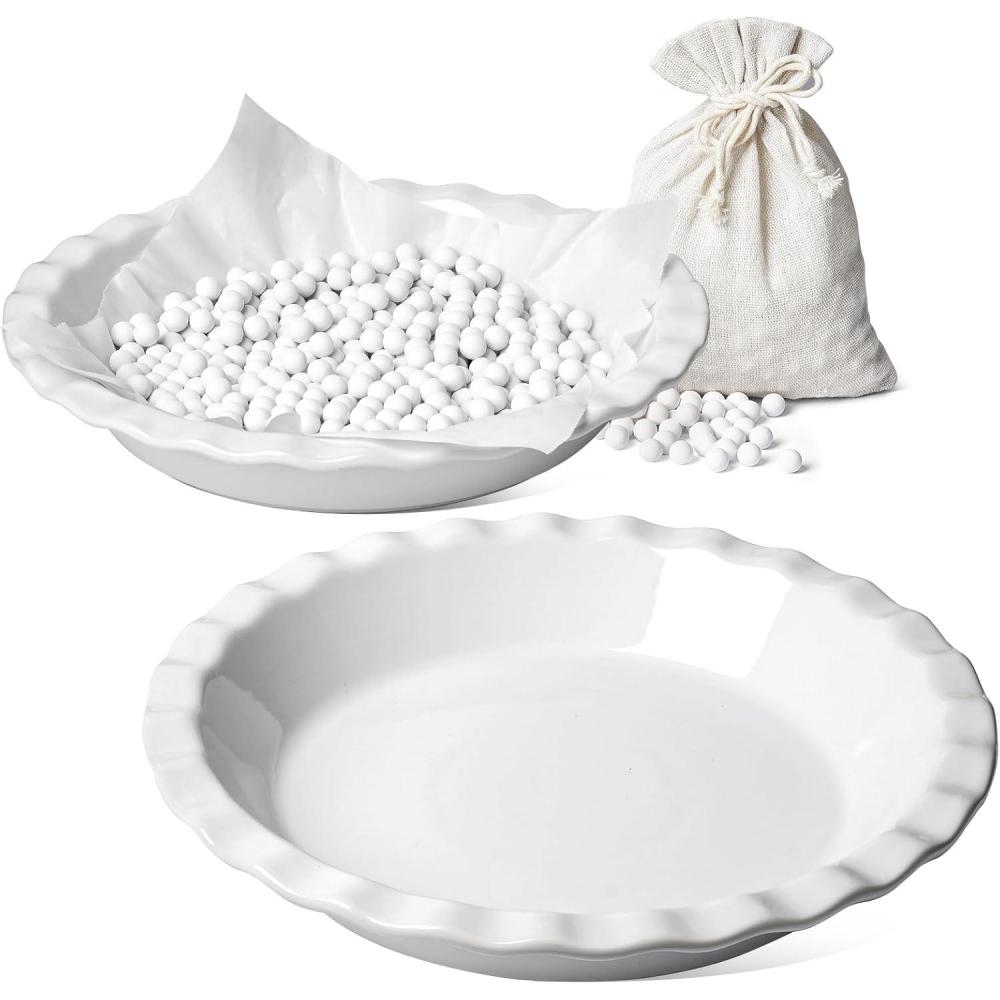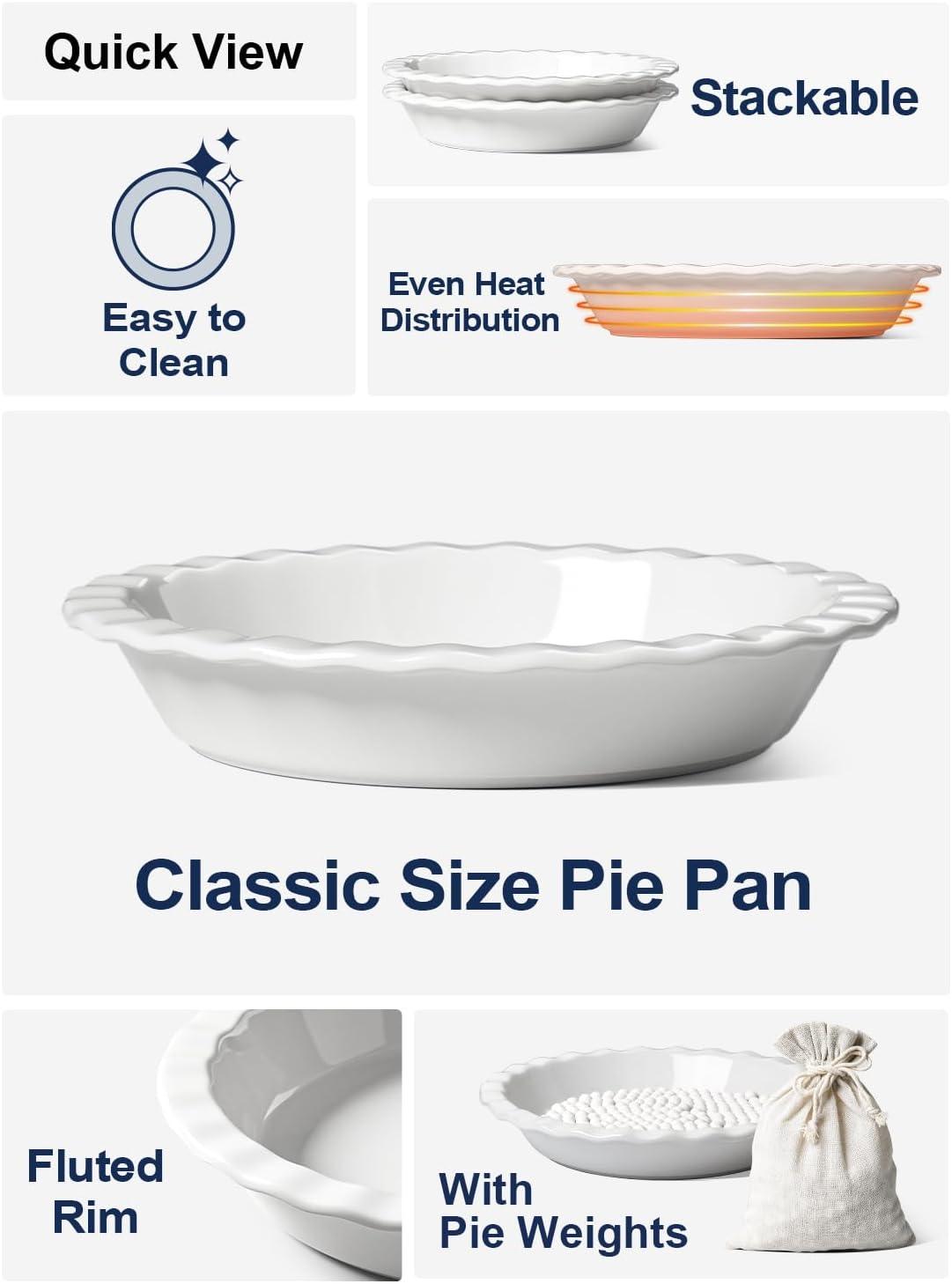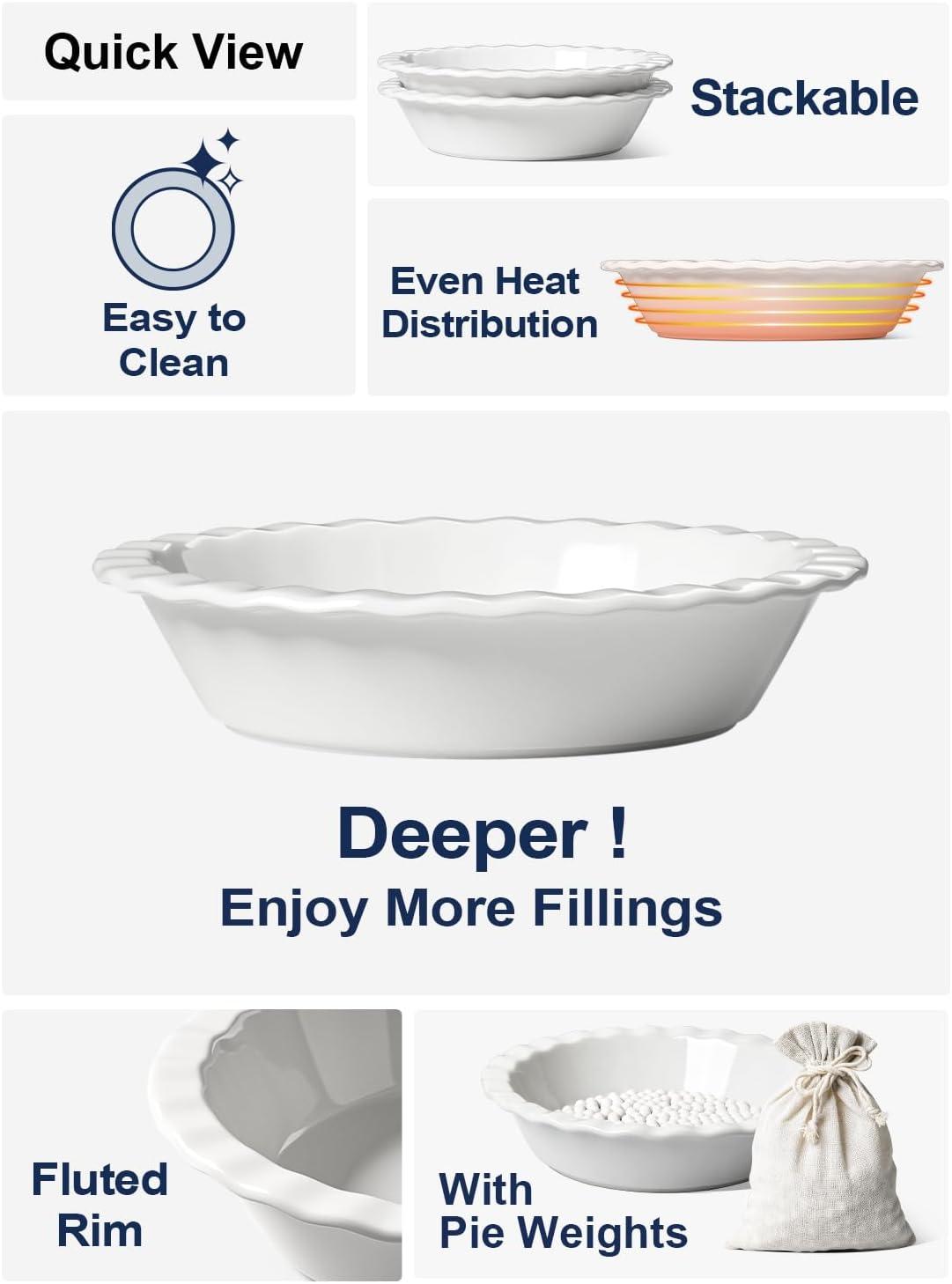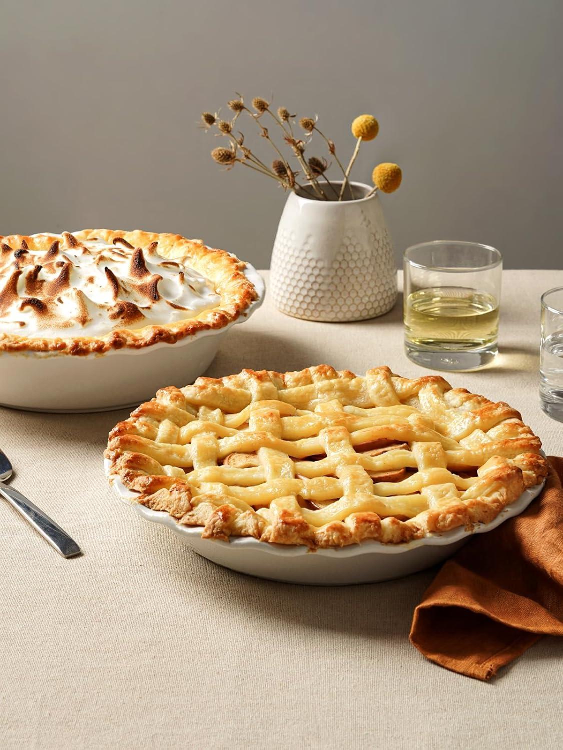 Even Baking & Elegant Serving: Thick ceramic walls ensure even heat distribution for flaky crusts and tender fillings. Glossy finish and fluted design make these pie pans just as beautiful for serving at the table as they are practical for everyday baking.