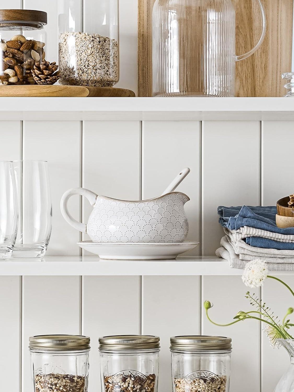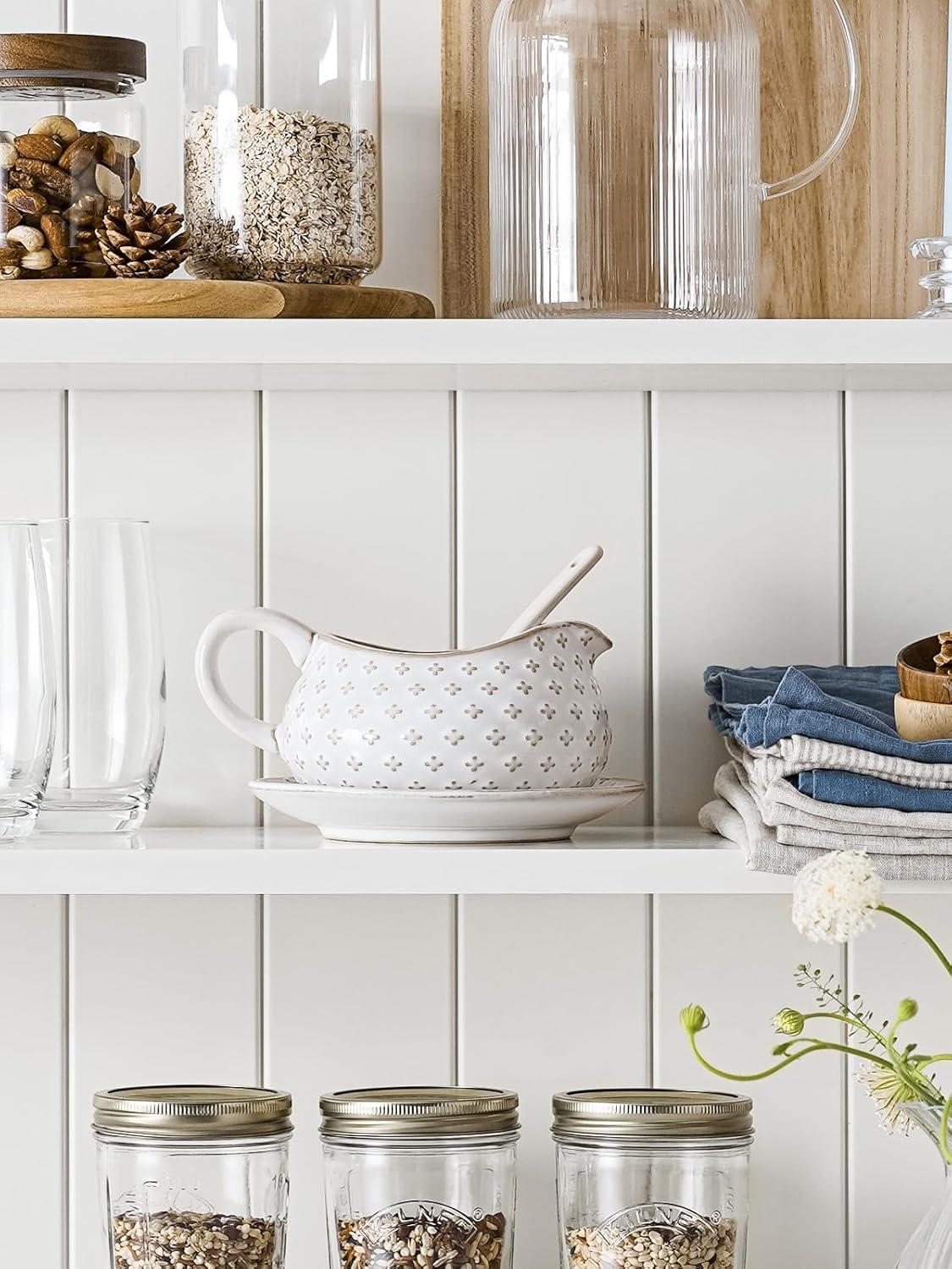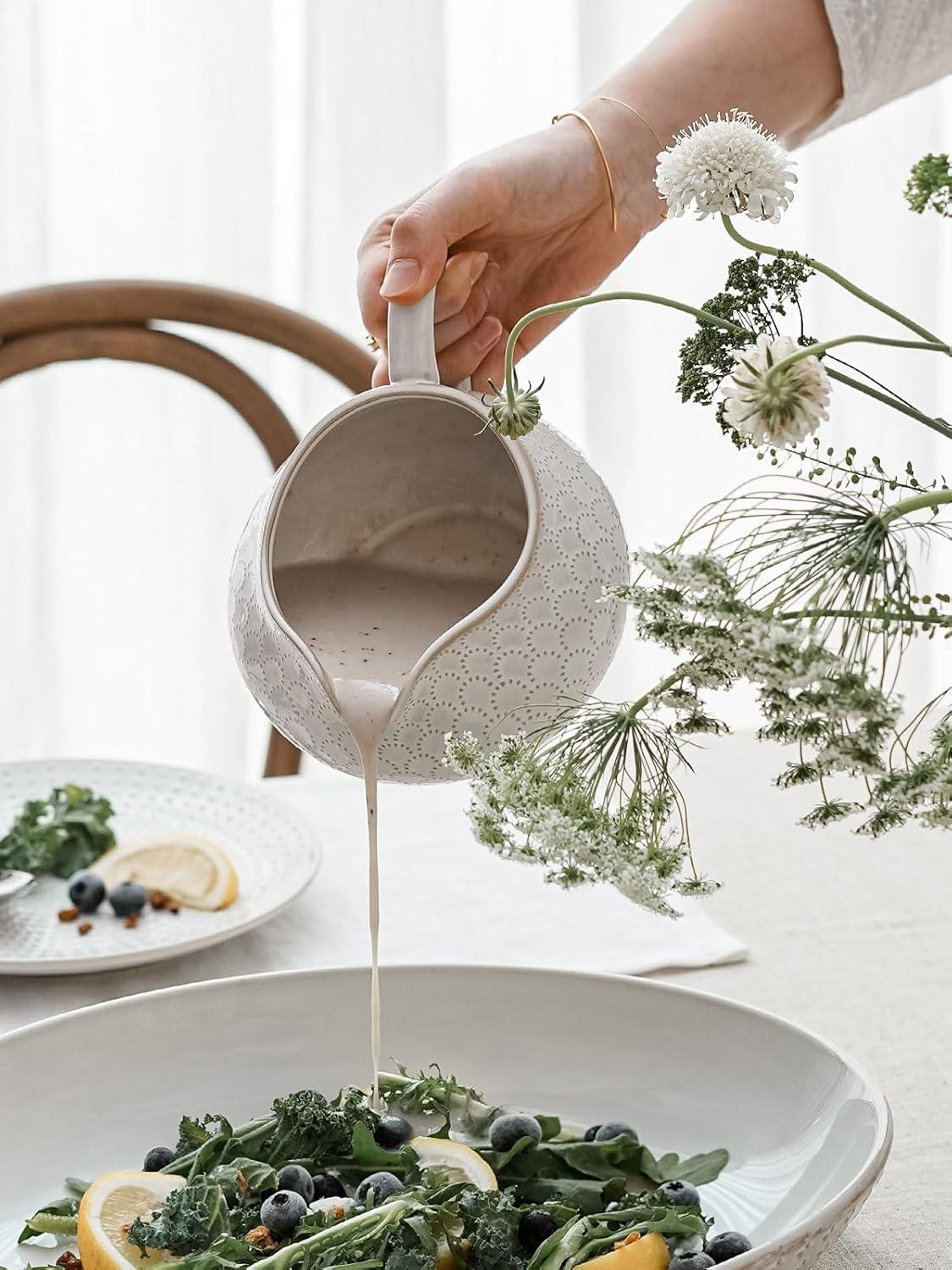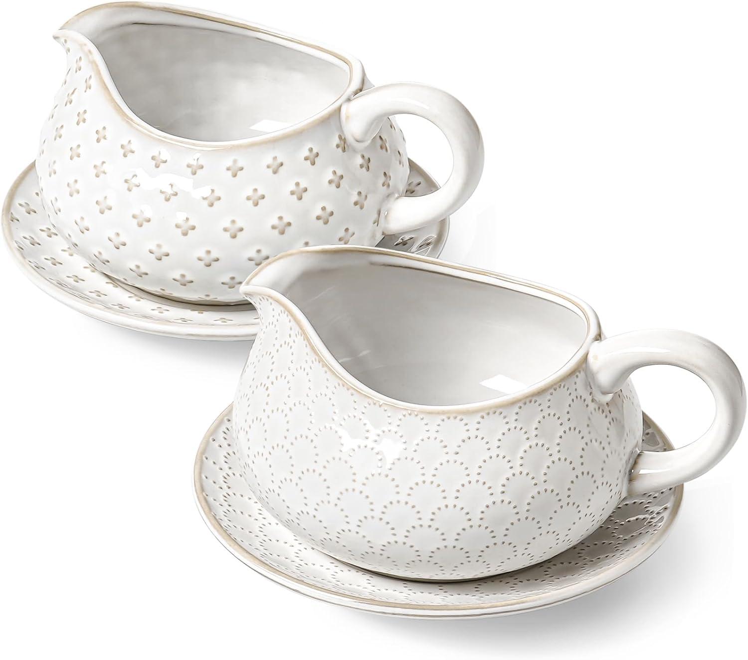 Cute Embossment: Featuring an arctic white glaze adorned with a charming embossed pattern, these farmhouse-style large gravy boats will infuse warmth and vitality into your home. Its cute and elegant design suits various styles, making it the pretty addition to your daily dinner or festival party