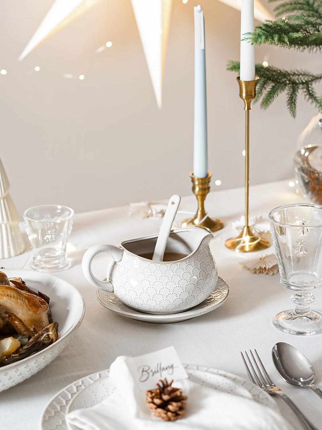 Sturdy And Easy Clean: These gravy boat glaze surface are sleek, make it easy to clean and diswasher safe. Great for placing that you don’t get as many scratches when you use them. Not only for Christmas holidays and Thanksgiving, but for daily use