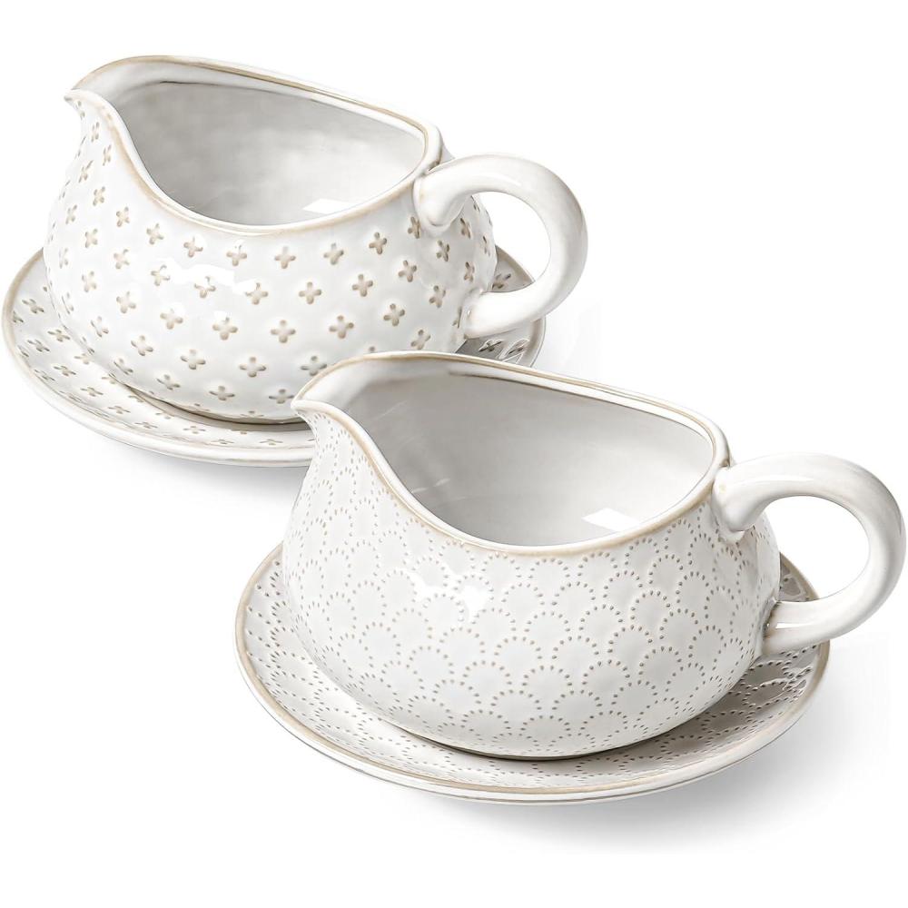 Cute Embossment: Featuring an arctic white glaze adorned with a charming embossed pattern, these farmhouse-style large gravy boats will infuse warmth and vitality into your home. Its cute and elegant design suits various styles, making it the pretty addition to your daily dinner or festival party