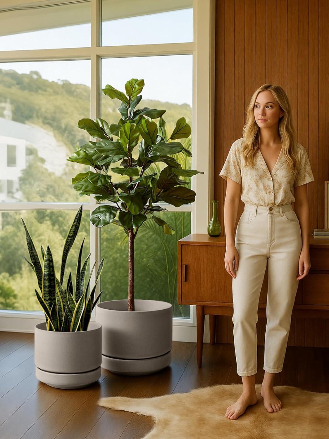 Modern Minimalist Design: A wide cylindrical body with clean lines and a weighted base adds visual weight and timeless elegance. This 14 inch plant pot elevates living rooms, entryways, offices, patios, and balconies. And is ideal for most medium to large houseplants