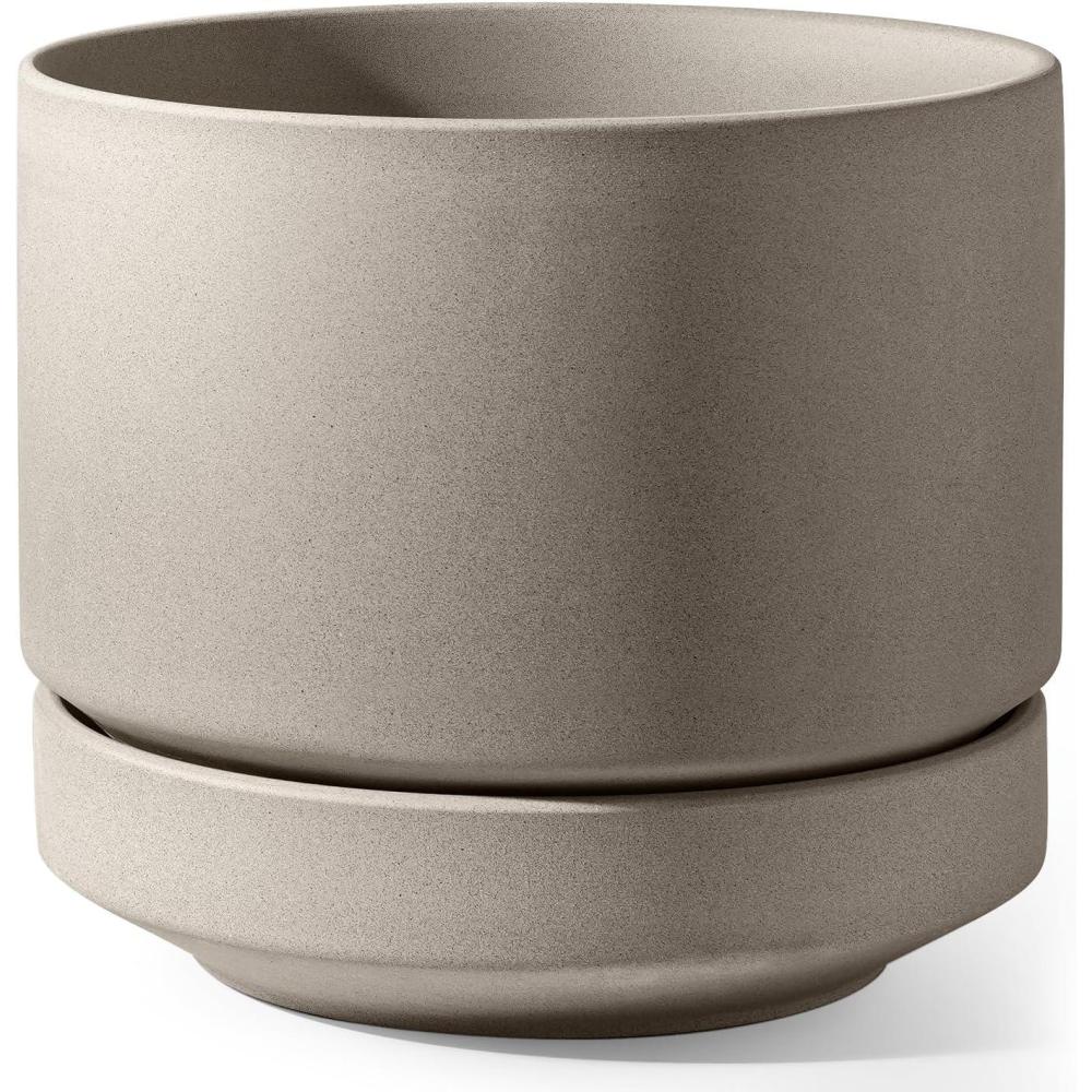imageLE TAUCI Large 14 Inch Plant Pot with Saucer  Ceramic Outdoor ampamp Indoor Big Planter Pot  Drainage Hole Mesh Pad ampamp Plug  Unglazed Porous  Modern Minimalist for Home and Patio  Neutral GrayNeutral Gray
