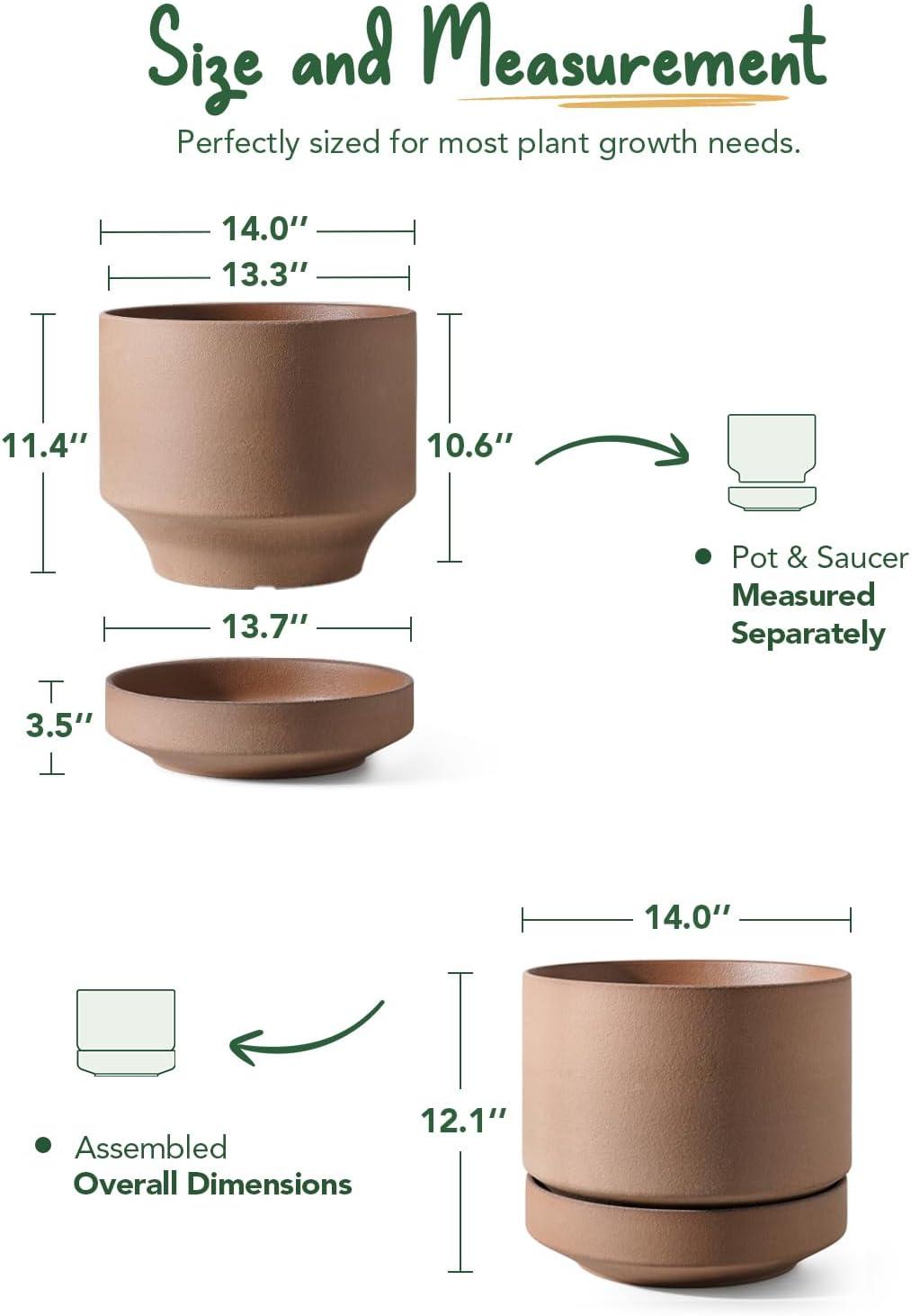 LE TAUCI Large 14 Inch Plant Pot with Saucer | Ceramic Outdoor & Indoor Big Planter Pot | Drainage Hole, Mesh Pad & Plug | Unglazed Porous | Modern Minimalist for Home and Patio – Terracotta Color(Terracotta Color)
