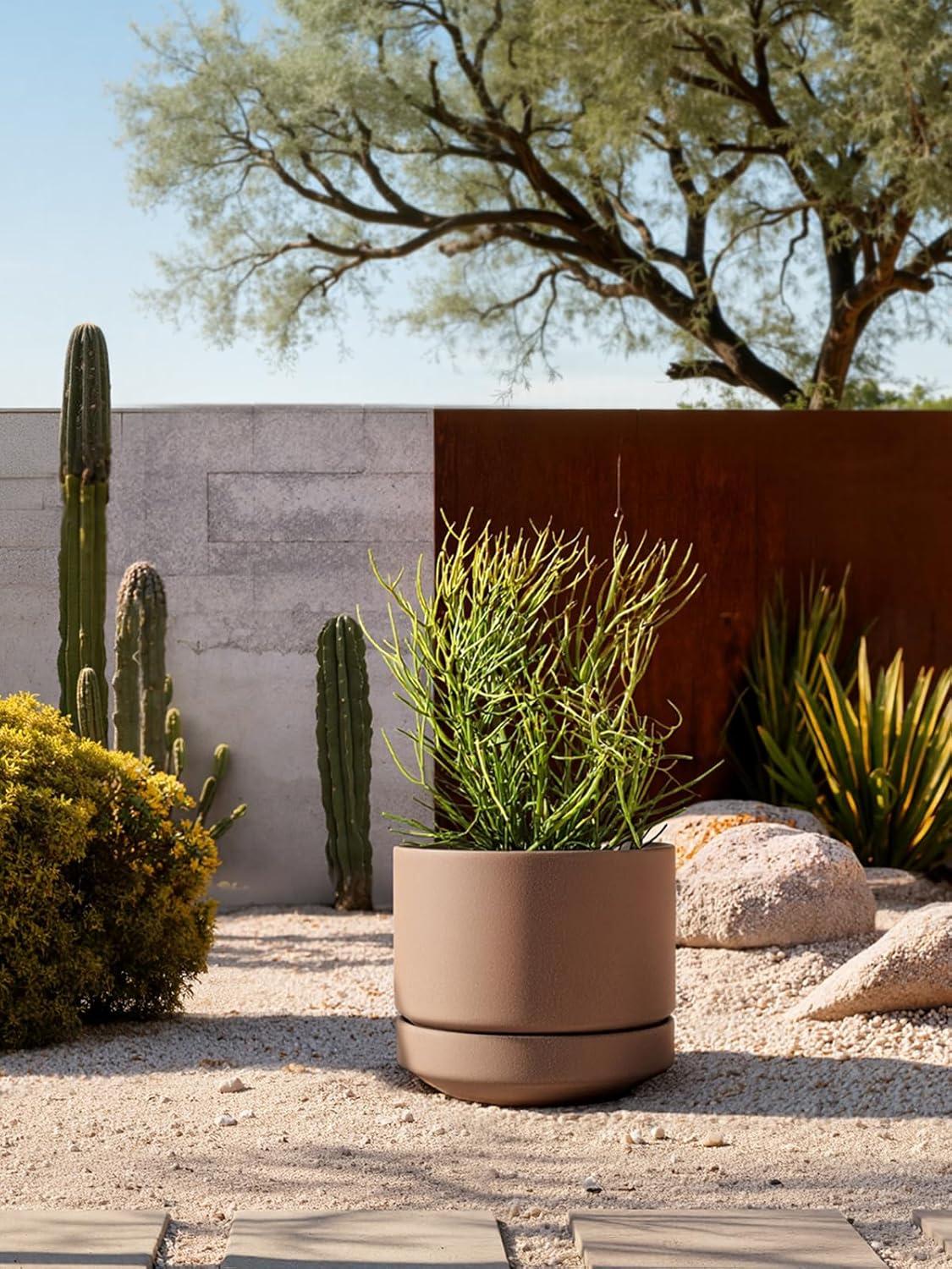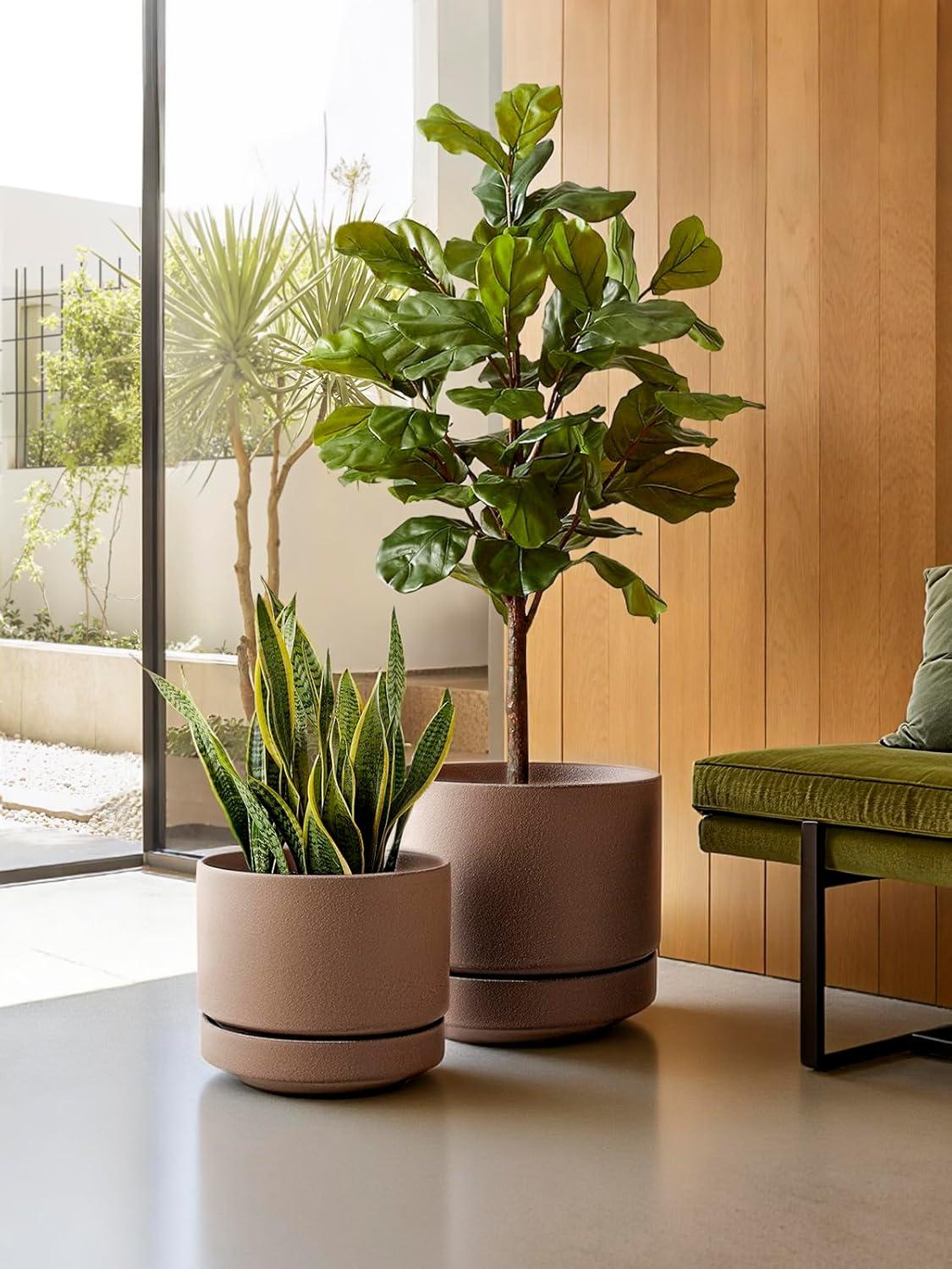 Modern Minimalist Design: A wide cylindrical body with clean lines and a weighted base adds visual weight and timeless elegance. This 14 inch plant pot elevates living rooms, entryways, offices, patios, and balconies. And is ideal for most medium to large houseplants
